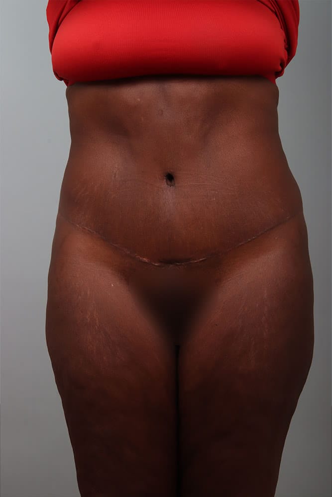 Before and after 5 months after extended abdominoplasty with muscle plication.