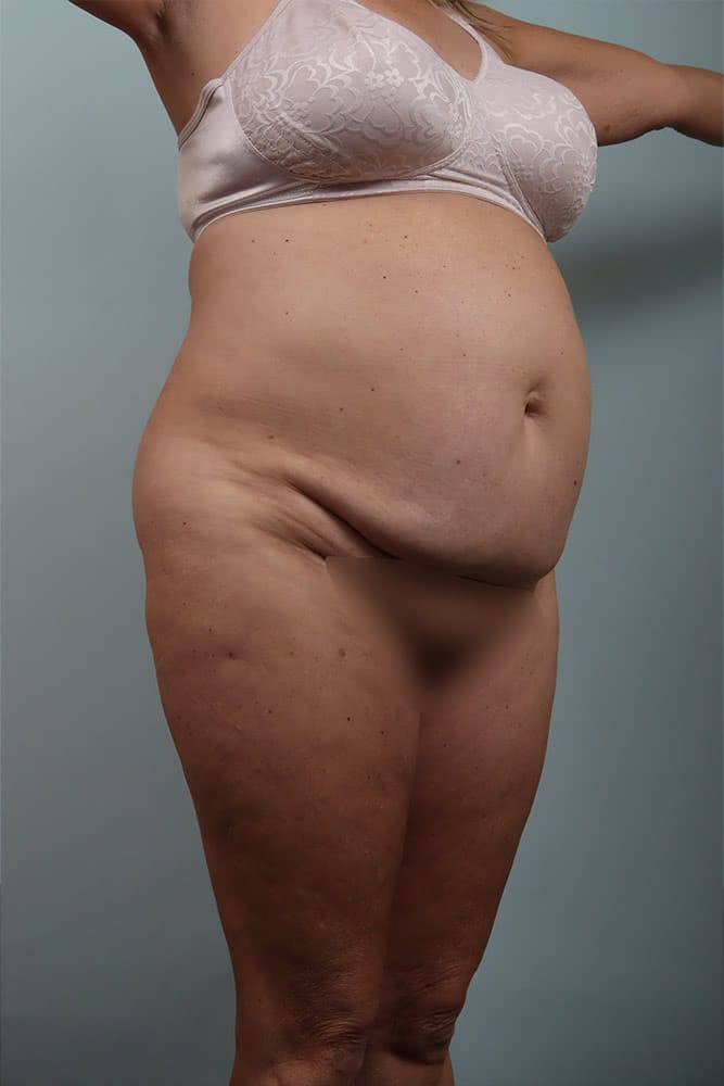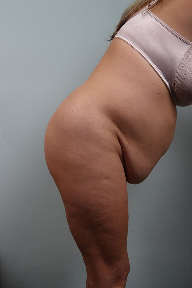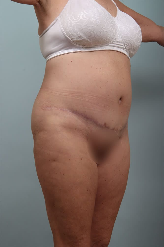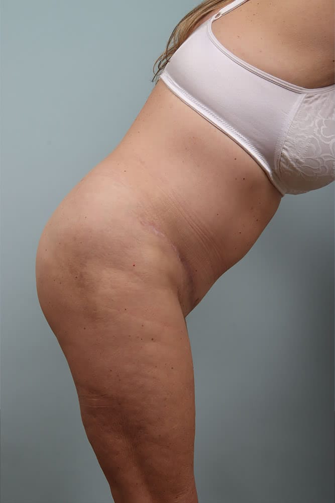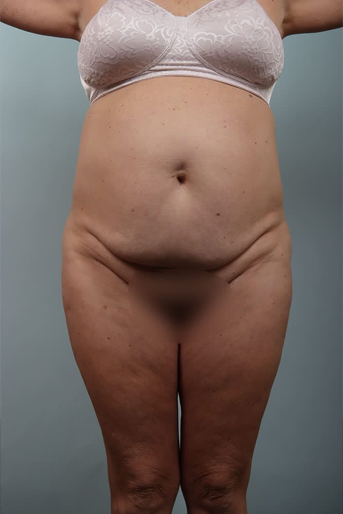 Before and 6 months after abdominoplasty with muscle plication, exparel, liposuction bilateral flanks and bilateral hips.