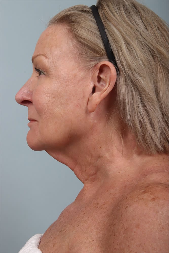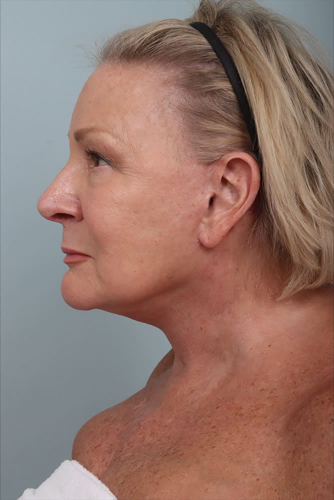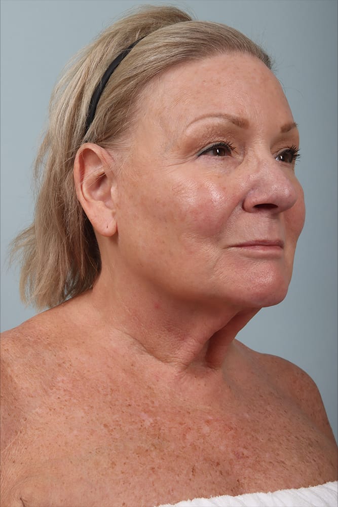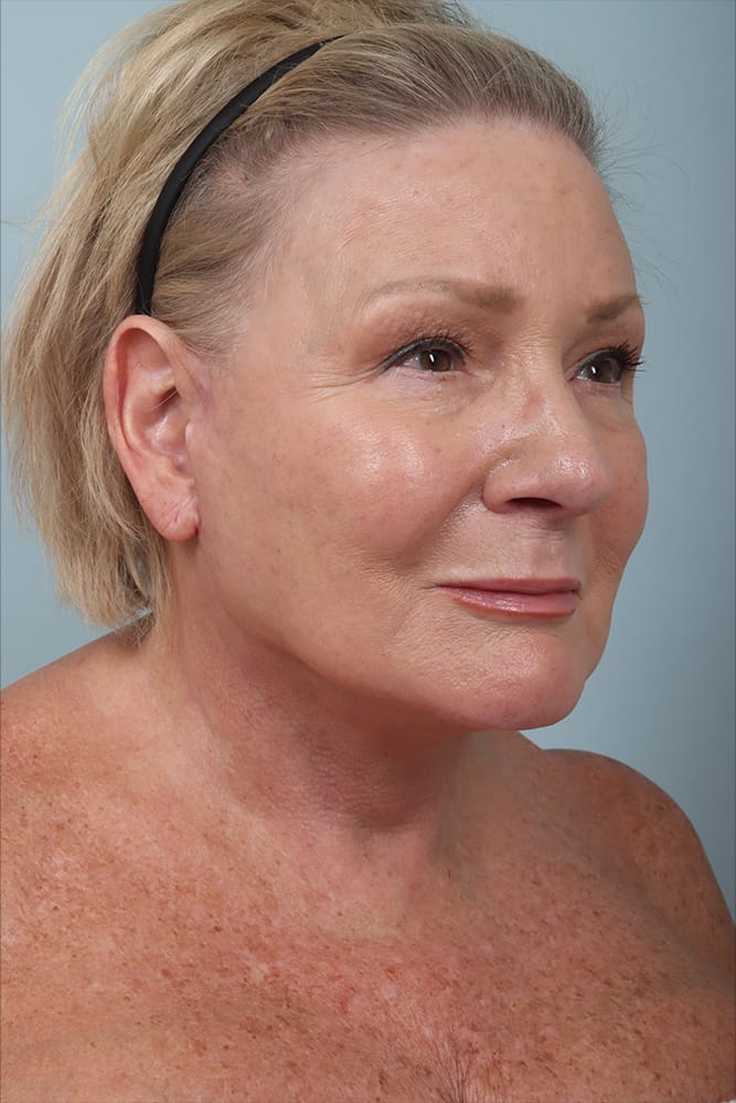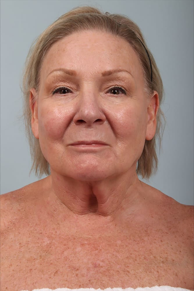 Before and 3 months after lower facelift and necklift, fat transfer to bilateral nasolabial folds and marionette lines, Kysse 1cc to bilateral lips.